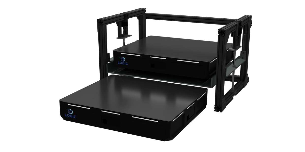This stacking capability minimizes the floor space required for moving or storing empty pallets, significantly improving operational efficiency. By integrating with Logic’s mobile robots, the lift system ensures smooth, automated workflows, whether transferring goods within the racking or preparing stacked pallets for transport. This combination of vertical mobility and stacking functionality creates a streamlined, space-saving solution ideal for high-density warehouses and distribution centers.
